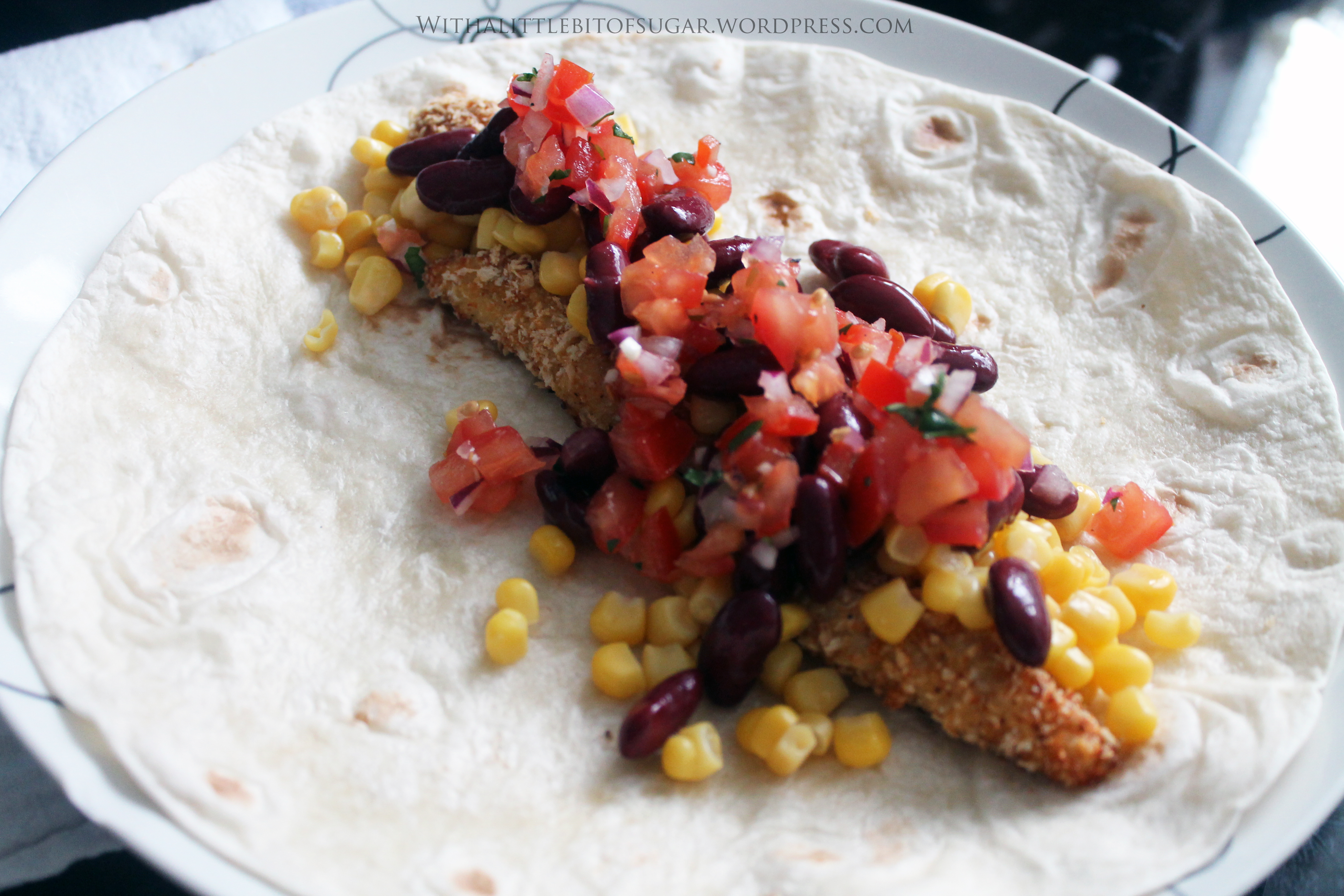 Kyckling, pico de gallo salsan, bönor, majs, turkisk yoghurt och lite ost!